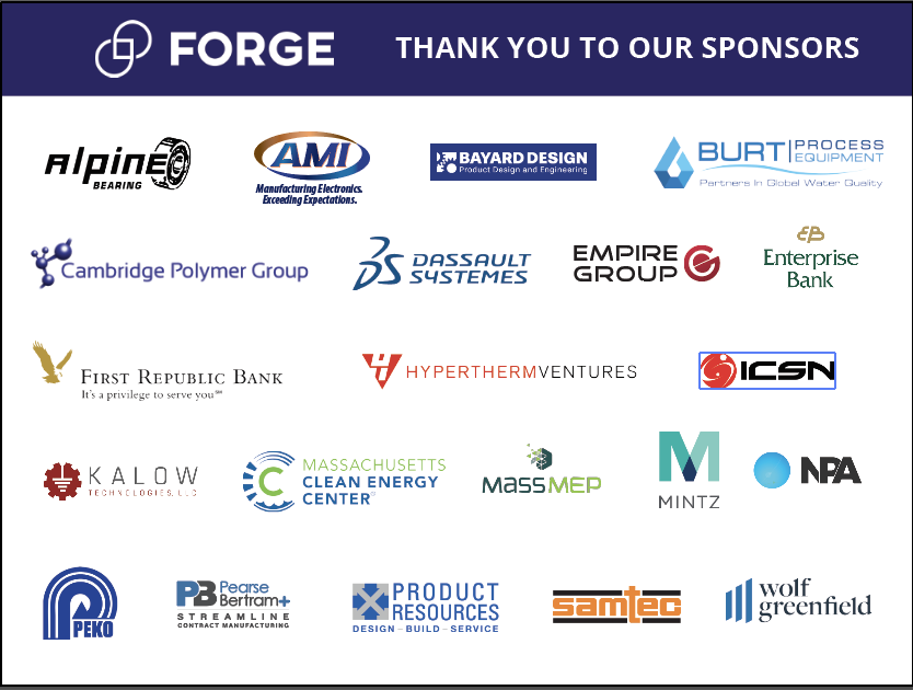 If you’re a startup, manufacturer, innovation ecosystem organization, or potential sponsor interested in learning more about or getting involved with FORGE, contact us today.